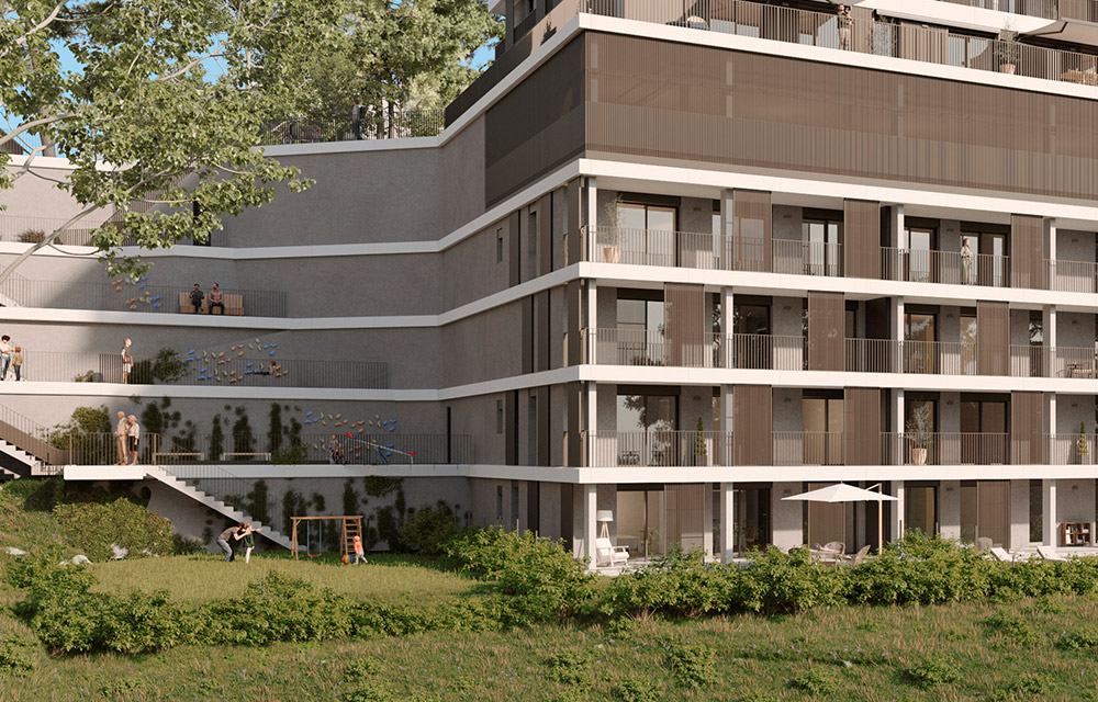 27 appartements du 2.5 au 5.5 pièces avec des surfaces habitables de 75 à 124 m2